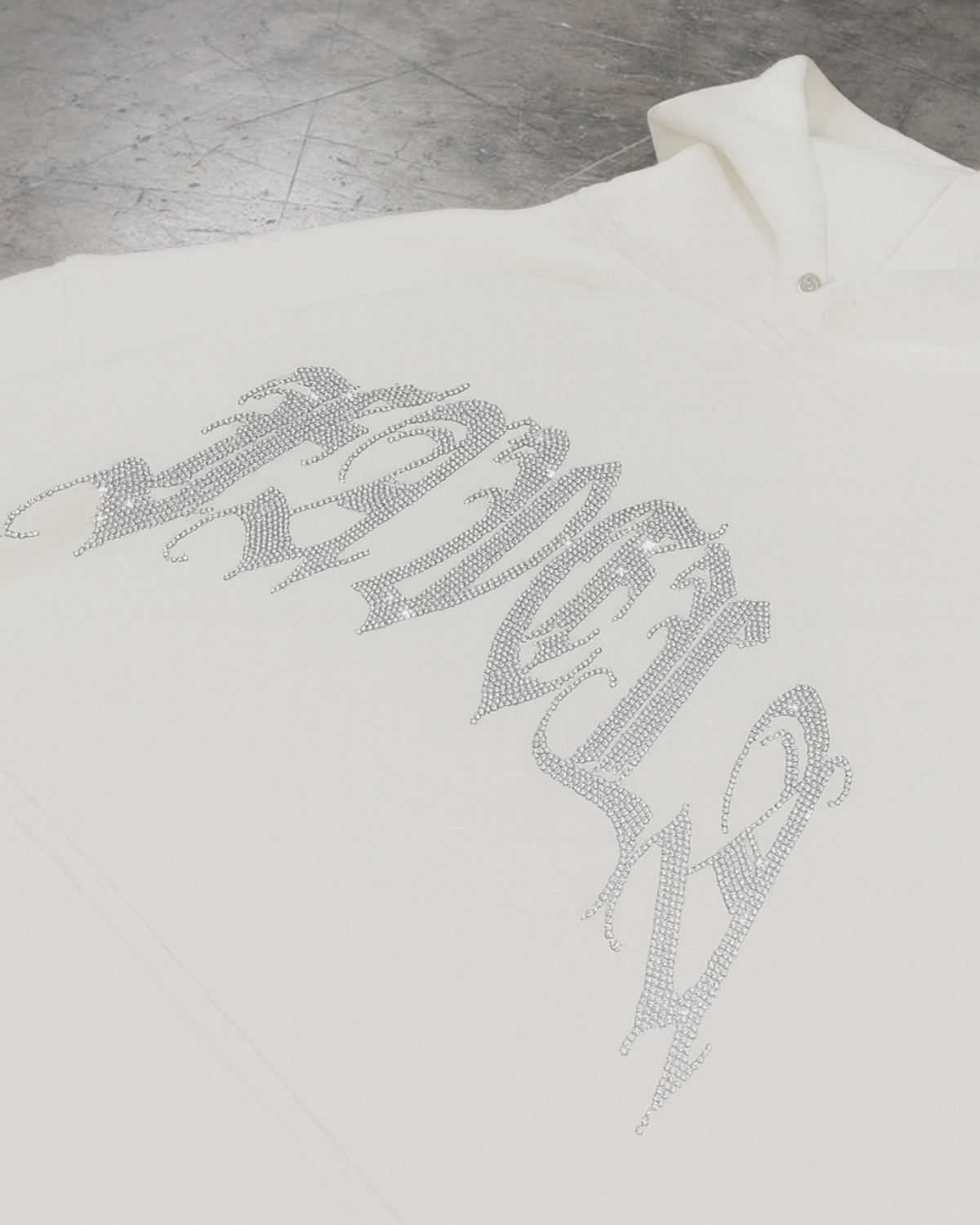 Beyaz Unisex Oversize Favela Parıltılı Taş Baskılı Sweatshirt