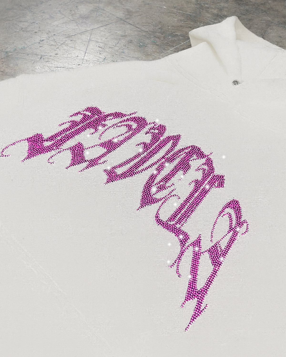 Beyaz Unisex Oversize Pembe Favela Parıltılı Taş Baskılı Sweatshirt