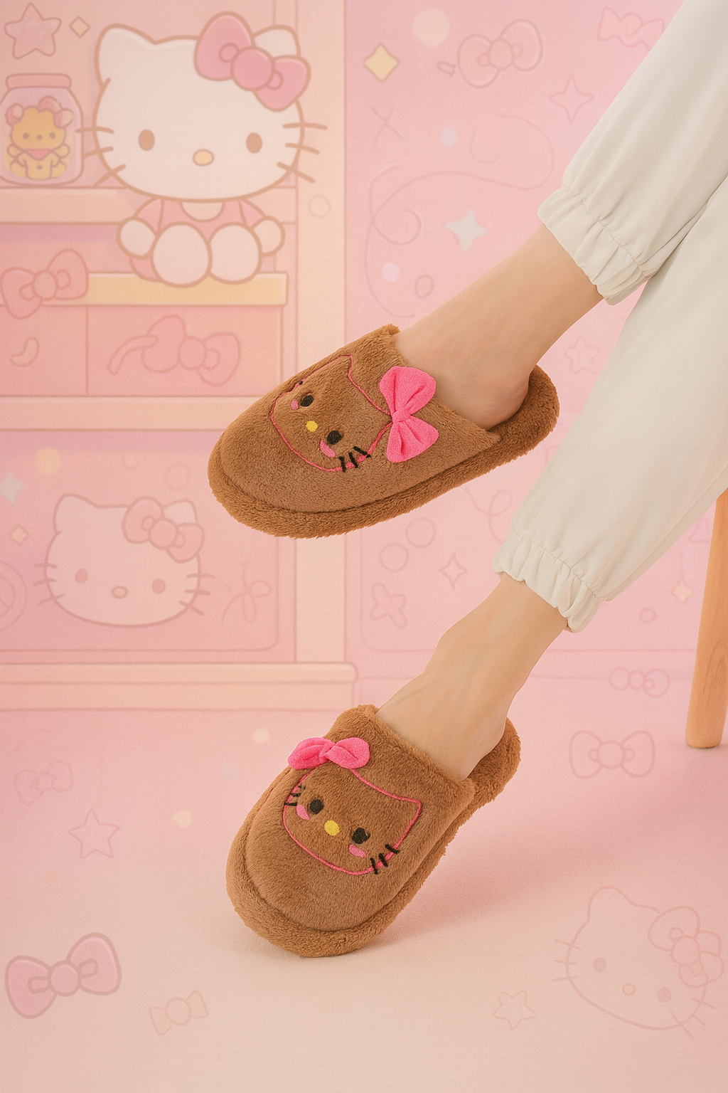 Kurdele Hello Kitty Tatlı Kahverengi Panduf Terlik
